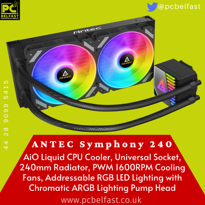 ANTEC Symphony 240 AiO Liquid CPU Cooler, Universal Socket, 240mm Radiator, PWM 1600RPM Cooling Fans...