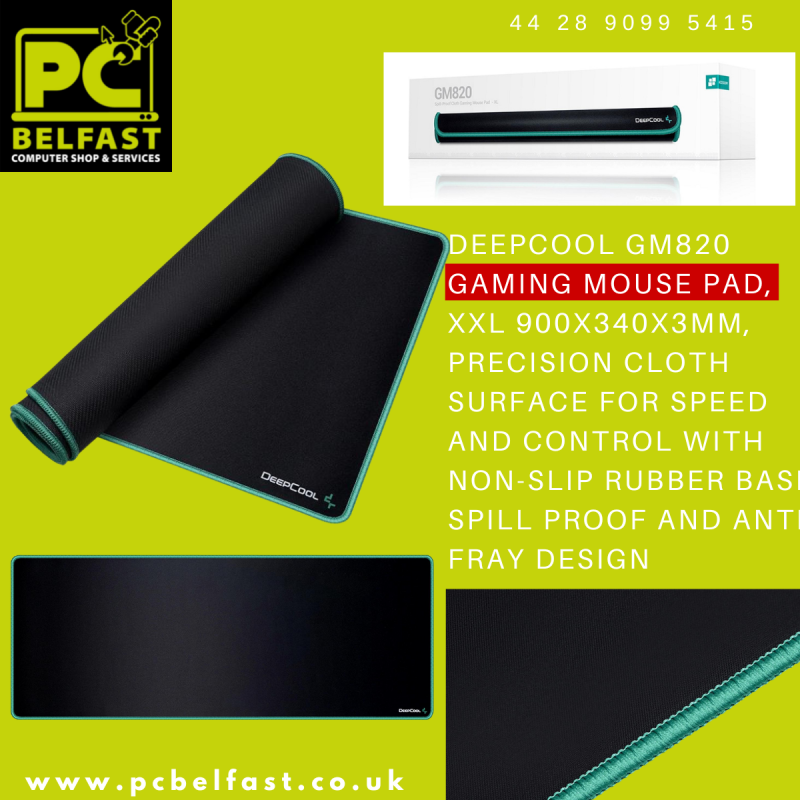 DeepCool GM820 Gaming Mouse Pad, XXL 900x340x3mm, Precision Cloth Surface for Speed and Control with Non-Slip Rubber Base, Spill Proof and Anti-Fray Design