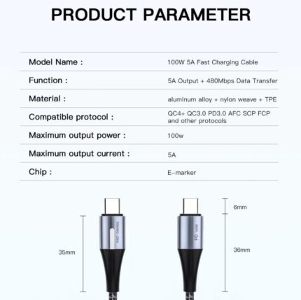 USB C 1m Type C (M) to Type C (M) Cable 100W/10Gbps