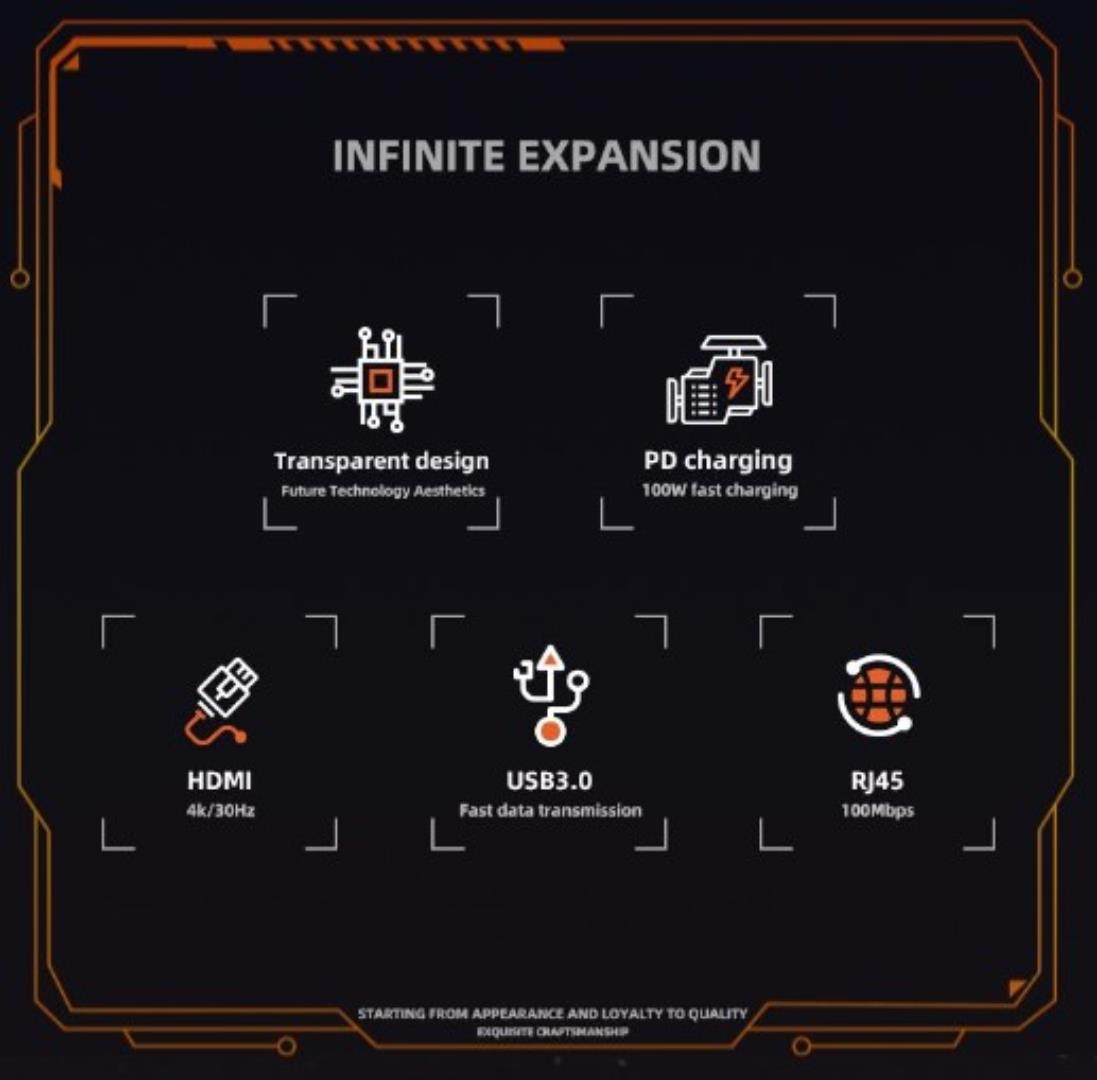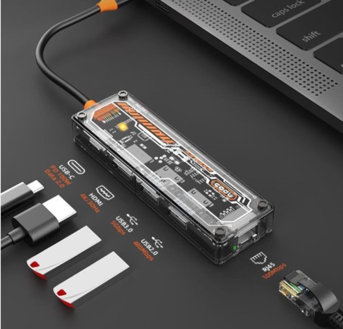 5 in 1 USB-C HUB Docking Station – Tansparent Mecha Series