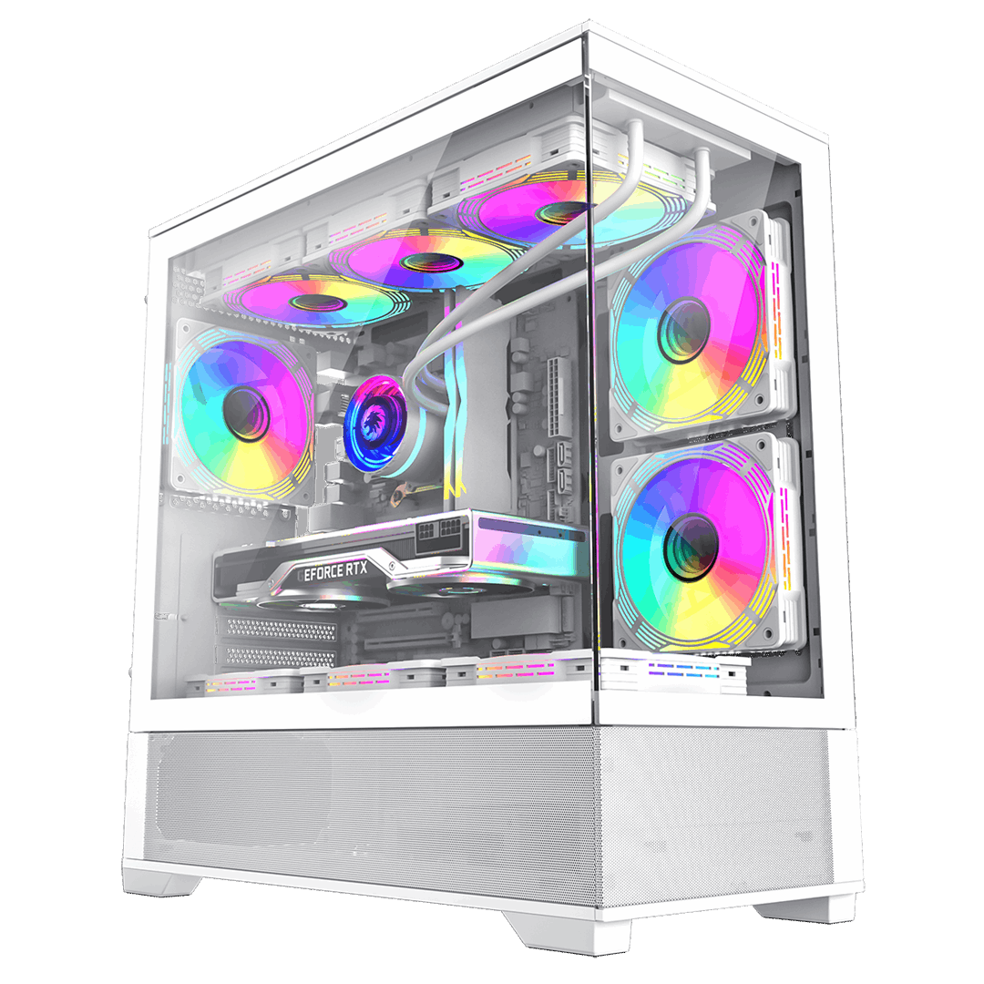 - Showcase Your Build – The GameMax Vista is a superb case to showcase your building skills. With a unique and stylish design with dual tempered glass panelling on the front and side of the chassis allows you to have an unobstructed view of your gaming hardware letting you construct a gaming PC that looks good from every angle.