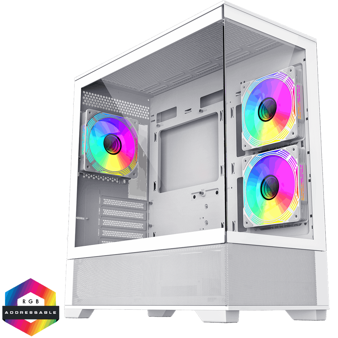 - Motherboard Software – The ARGB lighting effects can be synced through the Motherboard which supports ARGB function, 5V 3-Pin Addressable RGB header, including ASUS AURA, MSI Mystic Light, Gigabyte Fusion 2.0 & ASRock. Customise the look with endless possibilities with 16.7 million static modes and 12 pre-set lighting effects.