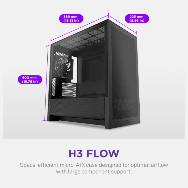 Product Name | NZXT H3 Flow Mid Tower Case Black (M-ATX/M-ITX) |